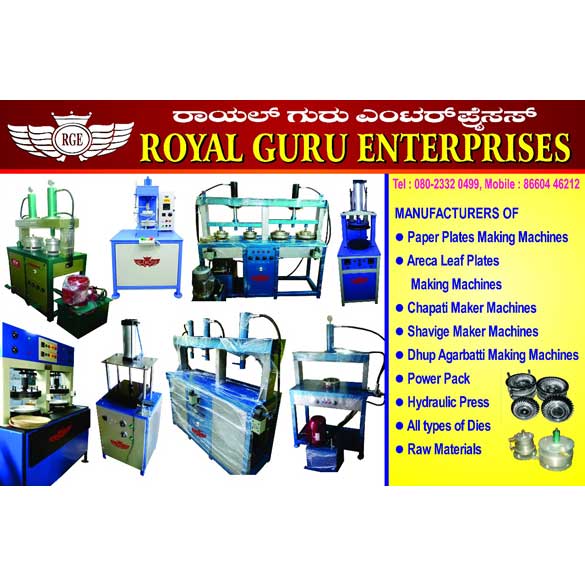 Established in the year 2012, our company, Royal Guru Enterprises has made a significant position in the market. We are a sole Proprietorship based firm and operate at Bengaluru, Karnataka (India). We are the leading manufacturer of Paper plate making machine, Areca leaf plate making dye, Paper Cup and Paper Plate. Our company ensures that the range is manufactured with utmost care under the strict supervision of professionals.